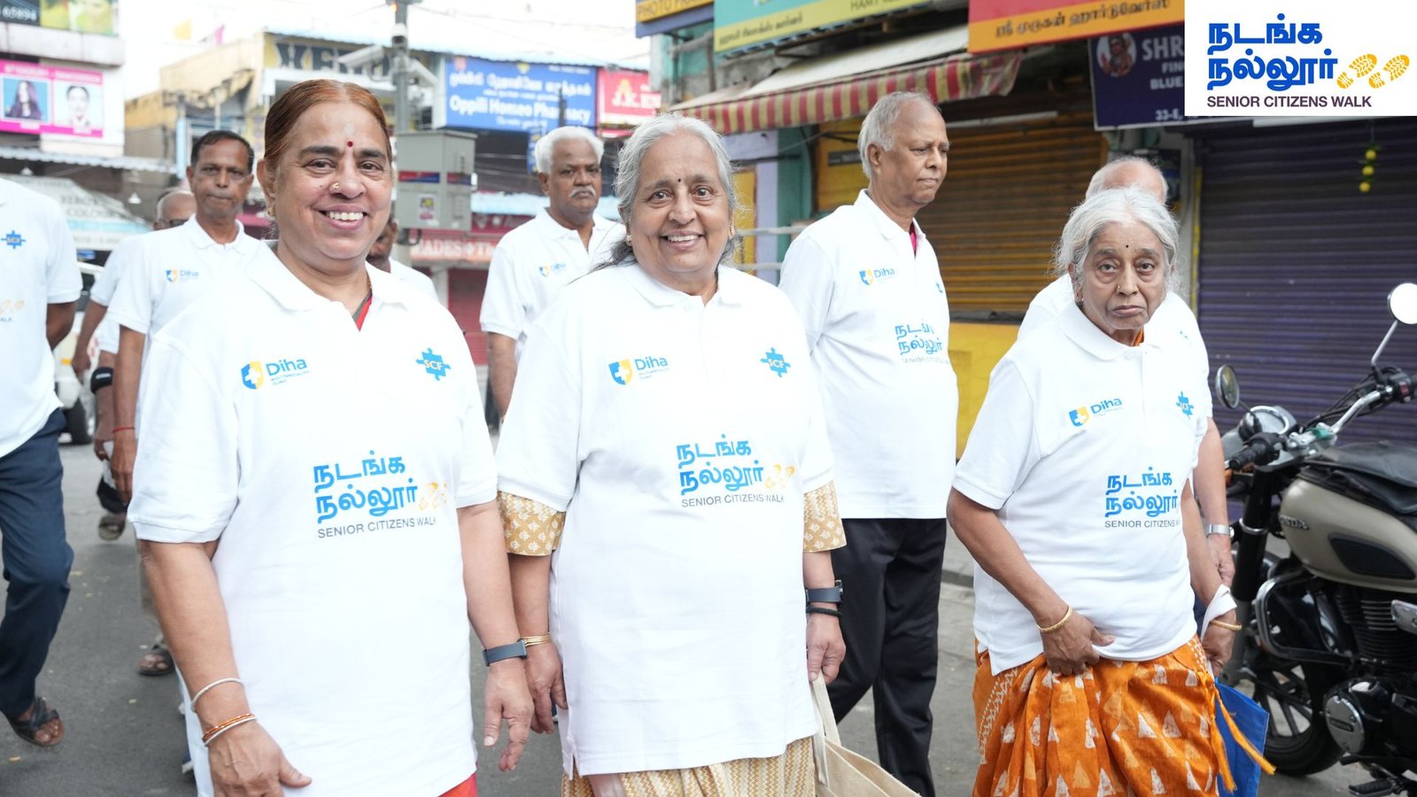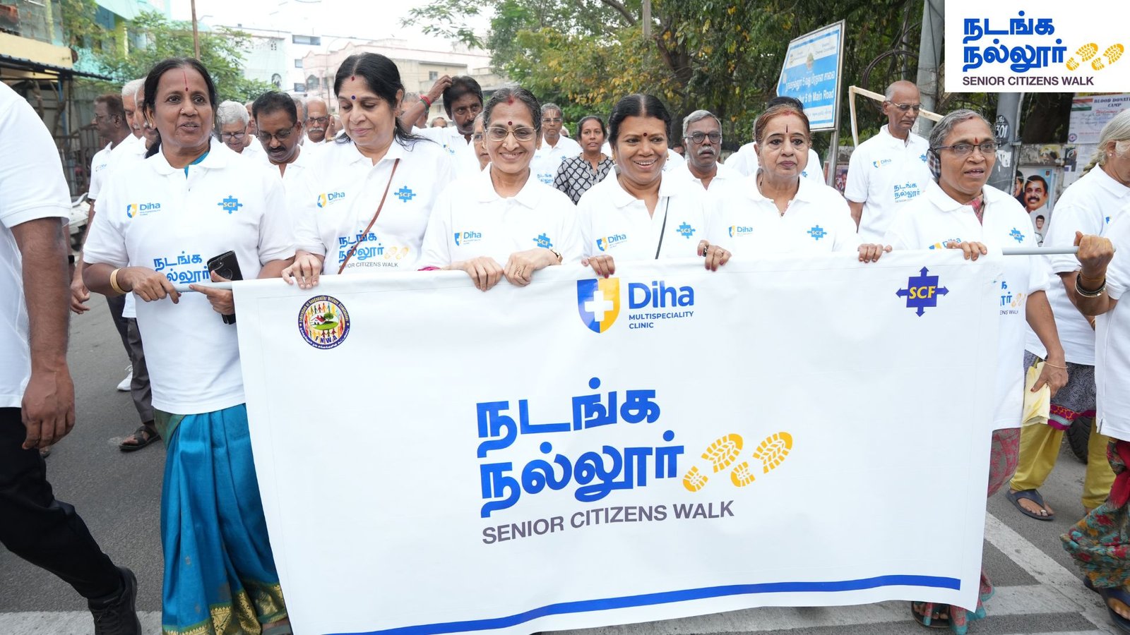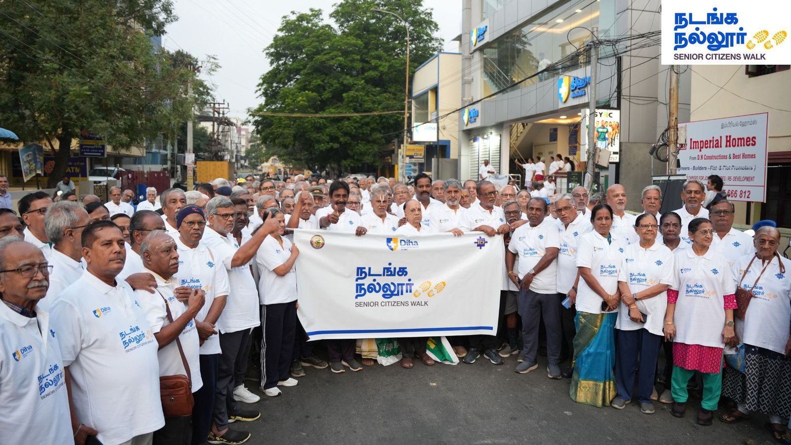 Diha Clinic successfully conducted the second edition of “Nadanga Nallur” – Senior Citizens Walk today in the early hours of Sunday at Nanganallur, near Independence Day Park. This was part of its ongoing Stay Healthy, Stay Happy initiative.